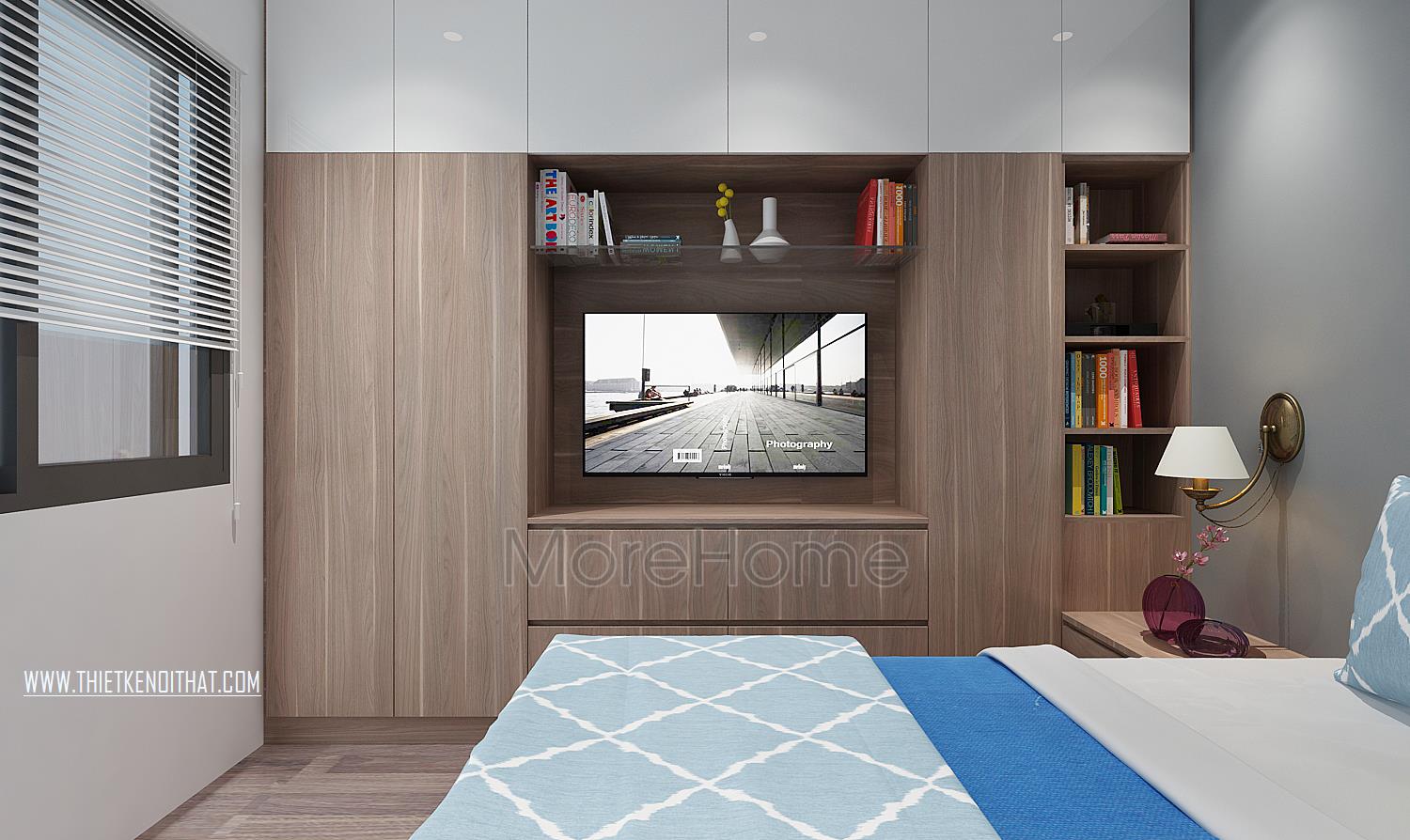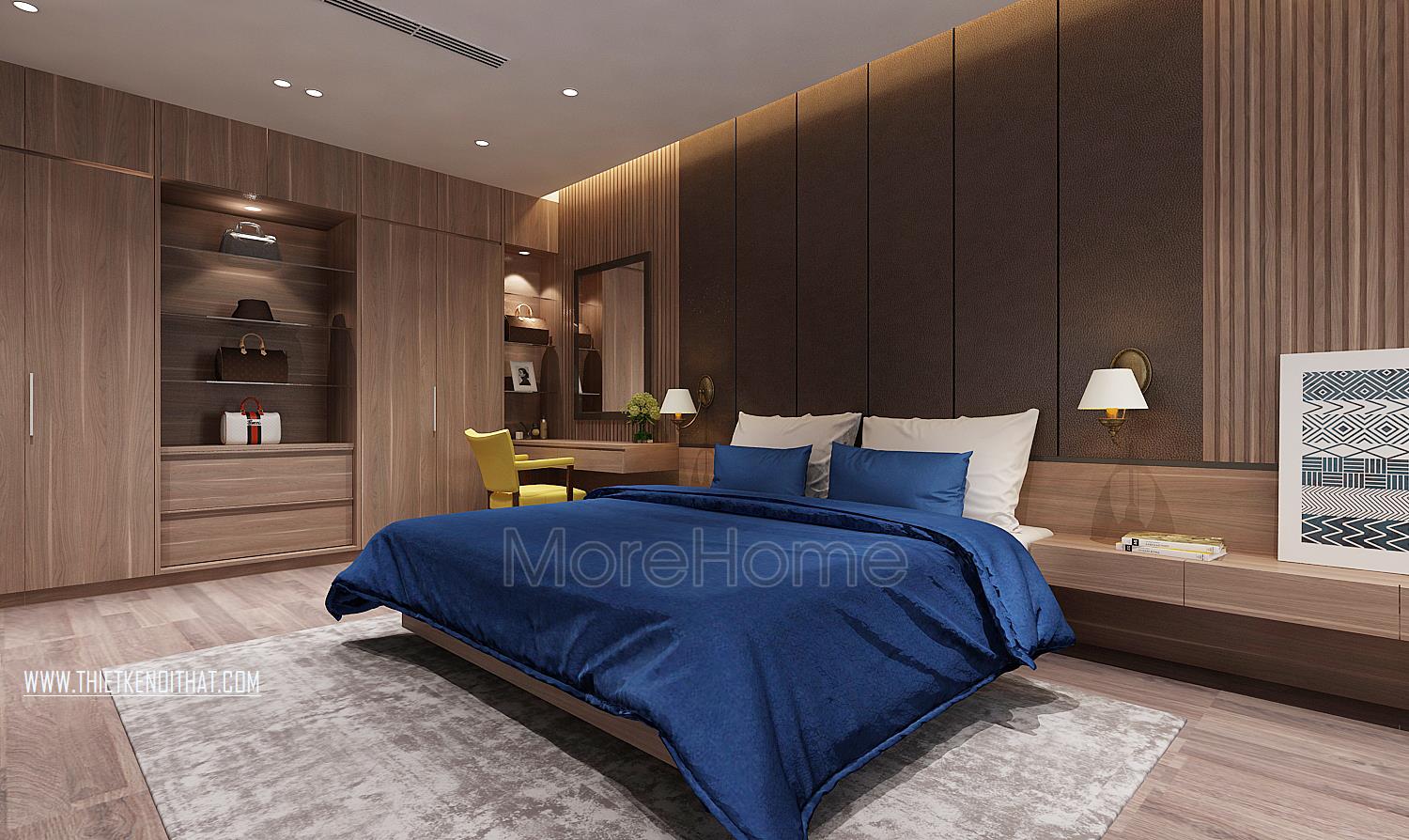Cuối cùng là thiết kế nội thất phòng ngủ phong cách hiện đại. Gỗ là vật liệu chính được kiến trúc sư sử dụng trong thiết kế này. Kệ tủ được thiết kế riêng, kết hợp, tạo thành một tổ hợp thiết kế nội thất hoàn hảo giúp tạo điểm ấn tượng và tăng tính thẩm mỹ cho căn phòng. Không gian rộng rãi với các khu làm việc, nghỉ ngoi riêng biệt giúp tạo sự riêng tư và thuận tiện cho gia chủ.